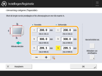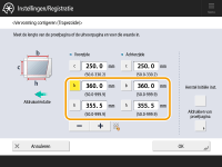 Voer de gemeten lengte in van de linkerzijde van de voorrand van het afdrukgebied naar de rechterzijde van het afdrukgebied.