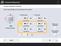 Wprowadzić zmierzoną długość od strony lewej krawędzi głównej obszaru drukowania do prawej krawędzi głównej obszaru drukowania.