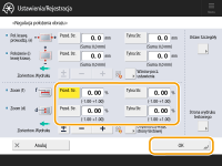 Regulację można również przeprowadzić przy użyciu arkusza głównego. Regulacja położenia obrazu za pomocą arkusza głównego