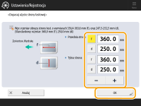 W przypadku długiego arkusza: wprowadź wartość obliczoną na podstawie zmierzonej długości znacznika „f” na stronie testowej długiego arkusza.