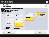 Jeżeli jako format pliku wybierzesz <PDF> albo <XPS>, możesz użyć opcji <Kompresja> i <OCR (Z wysz. tekstu)> jednocześnie. W takim wypadku na ekranie Podstawowych funkcji skanowania i wysyłania pozycja <PDF (Skompresowa.)> albo <XPS (Skompresowa.)> jest wyświetlana jako format pliku.