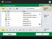 Para verificar o número total de destinos especificados.O número total de destinos especificados é mostrado no topo superior direito do ecrã. Isto permite-lhe confirmar que o número de destinos está correto antes de enviar.