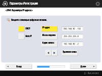 Чтобы задать IP-адрес вручную, нажмите кнопку параметра <DHCP> или <Авто IP>, чтобы отключить его, нажмите кнопки <IP-адрес>, <Маска подсети> и <Адрес шлюза>, после чего введите соответствующие значения, а затем нажмите кнопку <Далее> или <OK>.