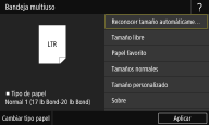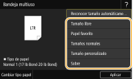2 | Seleccione el tamaño de papel en la pestaña <Tamaños de papel frecuentes>. Si no aparece el tamaño de papel cargado, seleccione la pestaña <Otros tamaños>. ![]() |