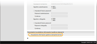Specificare le impostazioni di acquisizione delle informazioni di gestione stampante.