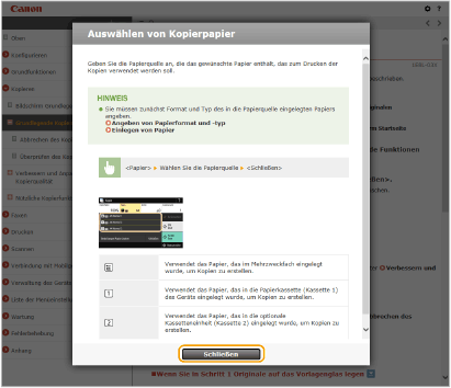 Wenn Sie auf das Symbol klicken, wird die aktuelle Seite möglicherweise schwarz und ein Popup-Fenster wird angezeigt. Klicken Sie im Popup-Fenster auf [Schließen], um zu der Seite zurückzukehren.