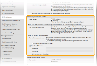 Bei Angabe von [Nur an eigene Adresse o. def. Ordner senden zulassen] in [Datei senden]