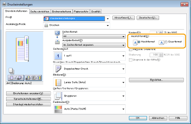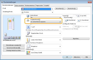 Passen Sie [Ausgabeformat] im Druckertreiber an das Format an, auf das Sie drucken möchten.