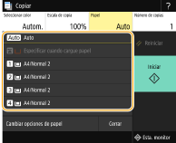 ![]() | Selecciona automáticamente el papel en función del tamaño del original cargado. |