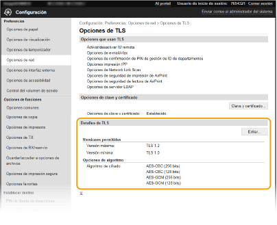 Especifique [Versión máxima] y [Versión mínima] de TLS.