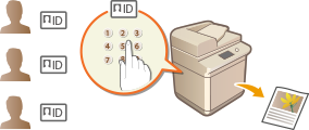 Podrá controlar el acceso al equipo utilizando varios ID para varios usuarios o grupos. Si un usuario intentara utilizar el equipo cuando está habilitada la Administración de ID de departamentos, aparecerá una pantalla de inicio de sesión, y el usuario deberá introducir su propio ID de departamento y su propio PIN para poder utilizar el equipo. Cuando la Administración de ID de departamentos esté habilitada, el uso de funciones como la impresión se registrará para cada ID de departamento. Para configurar la Administración de ID de departamentos, registre los ID de departamento según corresponda y, a continuación, habilite la función Administración de ID de departamentos. Si desea habilitar la Administración de ID de departamentos para los trabajos desde un ordenador, deberá configurar opciones adicionales en el lado del ordenador.