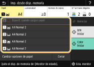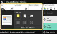 Seleccione <Imp. desde disp. de mem.> en la pantalla Inicio.