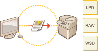 Especifique el protocolo y el puerto cuando utilice el equipo desde un ordenador a través de la red. Antes de configurar el equipo para imprimir o enviar/recibir faxes desde un ordenador, realice los procedimientos de configuración básicos. Para obtener más información, consulte los manuales de los controladores correspondientes en el sitio web de manuales en línea.