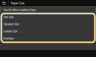 1 | Select <Custom Size>. ![]() You can specify the paper size as <Free Size>, which eliminates the need to enter the paper size setting. Specify <Free Size> when you load paper of unknown size to use for copying or when the paper size is already registered in the printer driver. |