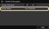 When not using the function for archiving sent documents, select <Off>.