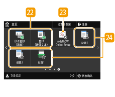 ![]() | <mdsFLOW Online Setup>可以通过连接到云服务来查看设备的使用状态和用户。有关详细信息,请访问佳能网站。 快捷键显示注册到复印、传真和扫描的“收藏夹设置”。向主页画面增加按钮 |