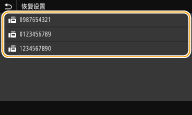 ![]() | 可以调用过去指定的接收方。当指定先前使用过的接收方时,本机也可以设置与上次发送文档到该接收方时所使用的相同传真设置,例如浓度等。 |