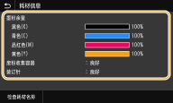 使用下述步骤查看墨粉盒、废粉收集容器中和装订针的剩余量。