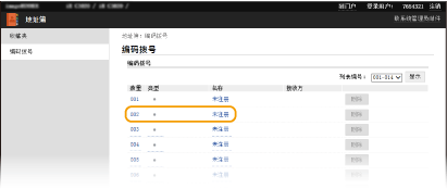 单击名称为“未注册”的项目的 [编号]、[类型] 或 [名称] 下面的文本链接。