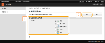 选择 [要注册的接收方类型] 并单击 [确定]。