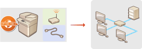 ![]() | ![]() | 检查计算机设置。 确认计算机正确连接至网络。更多信息,请参阅您所使用的设备的使用说明书,或联络设备制造商。 确认在计算机上已完成网络设置。如果网络未正确设置,即使执行了其余以下步骤,也无法在网络上使用本机。