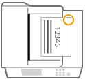 1 | 원하는 용지 묶음을 내장 피니셔의 슬릿에 넣습니다. 용지 앞면을 아래로 향하게 하여 스테이플링하려는 용지 묶음 가장자리를 슬릿 쪽으로 넣습니다. 용지 묶음이 감지되면 스테이플 버튼이 깜박이기 시작하고 자동 스테이플링이 이뤄집니다. 지정된 예정 스테이플링 시작 시간을 기다리지 않고 스테이플링을 수행할 수 있습니다. 한 손으로 종이 묶음을 들고 다른 손으로 스테이플 버튼을 누릅니다. |