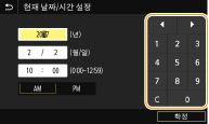 값의 범위엔트리 박스에 표시된 ( ) 안의 값은 입력 가능한 값의 범위입니다. 숫자 키 이외의 버튼이 표시되는 경우:<+> / <-> 또는 / 이 표시되면 버튼을 눌러 숫자 값을 증감하거나 커서를 이동할 수 있습니다. |