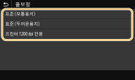 4단계에서 <표준 (보통용지)> 또는 <표준 (두꺼운용지)>를 선택한 경우 보정화상의 인쇄 및 스캔을 세 번 하고 <프린터 1200 dpi 전용>을 선택한 경우 두 번 합니다.