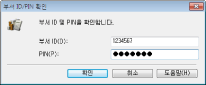 ID와 PIN이 정확히 입력되었는지 확인하려면 클릭합니다. 기기와 컴퓨터가 USB 또는 WSD(Web Services on Devices) 포트를 통해 연결된 경우에는 이 기능을 사용할 수 없습니다.