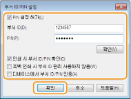 컴퓨터에서 작업할 때마다 [부서 ID 및 PIN을 확인합니다.] 팝업 화면을 표시하려면 확인란을 선택합니다.