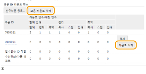 카운트를 0으로 되돌리려면 [부문 ID]를 클릭하고 [카운트 삭제]  [확인]을 클릭합니다. 모든 부서 ID의 카운트를 0으로 되돌리려면 [모든 카운트 삭제]  [확인]을 클릭합니다. |