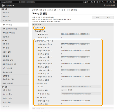 스테이트풀 주소를 사용할 경우 확인란을 선택합니다. DHCPv6을 사용하지 않을 경우 확인란 선택을 해제합니다.