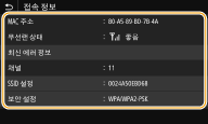<무선랜 상태> 및 <최신 에러 정보>을 <시스템 상황>에서 볼 수 있습니다.