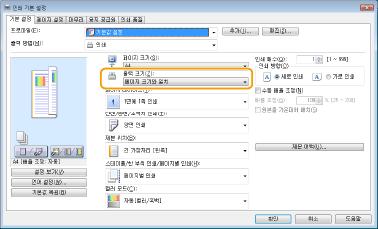 프린터 드라이버의 [출력 크기]와 인쇄할 용지의 크기를 맞춥니다.