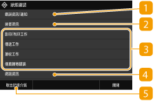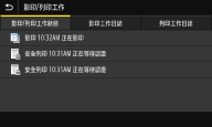 顯示所選項目的目前狀態。下圖以 <影印/列印工作> 畫面為例說明。