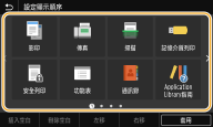 您可以將快速鍵按鈕新增至首頁畫面,以使用如 <影印>、<傳真> 和 <掃描> 等常用功能。例如,您可以給一個按鈕指派設定的順序(例如「掃描原稿的兩面,將原稿儲存為高壓縮率的 PDF 檔案,然後透過電子郵件傳送」),以便更快速有效地執行任務。