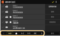 ![]() | 可以在通訊錄中註冊常用傳真/掃描接收者,需要時很方便就能從中選擇(在通訊錄中註冊接收者)。搜尋接收者的方式包括按字母順序搜尋、從通訊錄中的名單搜尋,或是輸入三位數字(簡碼撥號號碼)搜尋。使用下列功能也能加快指定接收者的速度。 |