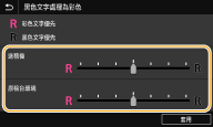 若黑色或黑色調文字的影印結果不佳,可以利用這項調整功能改善色彩重現度。