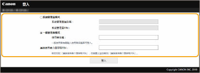 可以執行所有遠端使用者介面操作和設定。在 [系統管理員識別碼] 中輸入正確的識別碼,並在 [系統管理員PIN] 中輸入 PIN。