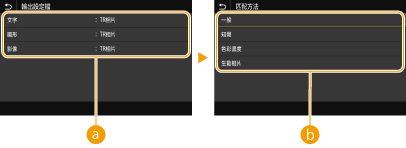 黃色/洋紅色/青色/黑色 17 個等級 <微調> <黃色>/<洋紅色>/<青色>/<黑色> <高>/<中>/<低> 17 個等級 |