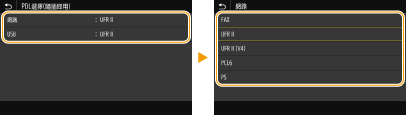 選擇 <網路> 或 <USB> 選擇頁面描述語言
