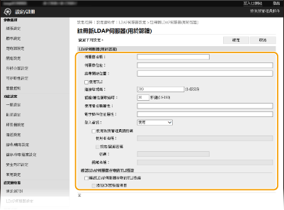針對 [LDAP伺服器(用於搜尋)] 或 [LDAP伺服器(用於認證)],按一下 [註冊新伺服器]。
