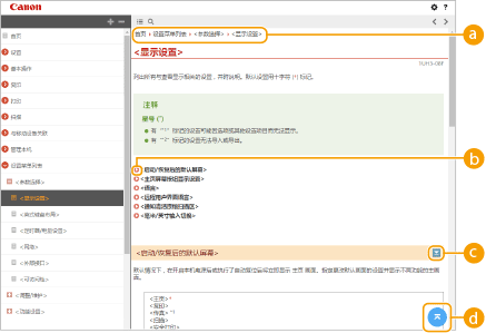 单击可设置参数以确定如何显示用户指南,如字符大小或布局。