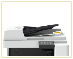 将原稿正面向上,尽可能地向里放置在输稿器中。