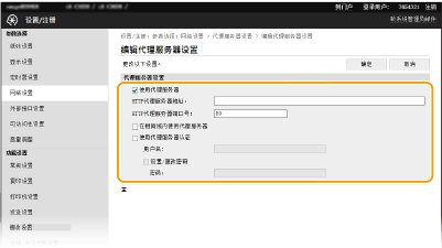 选择 [使用代理服务器] 复选框,并指定所需设置。