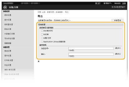 如果选择了 [地址簿(ABK)] 复选框,就无法同时导出本机设置和地址簿数据。