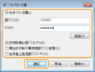 [允许识别码未知的打印作业]为了在启用部门 ID 管理期间从计算机发送作业,您需要输入正确的 ID 和 PIN(