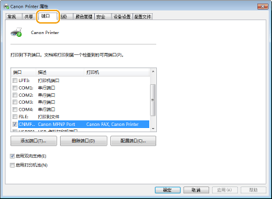 标准 TCP/IP 端口 | 这是一个标准的 Windows 端口。当使用此类型的端口时,需要在本机的 IP 地址每次变更时添加新端口。当在 IPv6 环境中使用本机并且无法添加 MFNP 端口时,请选择此类型的端口。 |