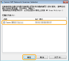 如需将本机用作扫描仪,必须事先完成准备工作,包括将软件安装到计算机。有关详细信息,请参阅在线说明书网站上相关驱动程序的说明书。在 Windows 中,通过无线或有线局域网将本机连接到计算机时,需要使用以下步骤在“MF Network Scanner Selector”中注册本机。如果本机和计算机通过 USB 连接,则不需要此步骤。