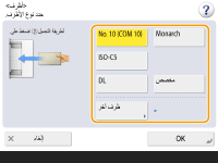 <OK>. تسجيل حجم ونوع الورق المستخدم بشكل متكرر للدرج متعدد الأغراض